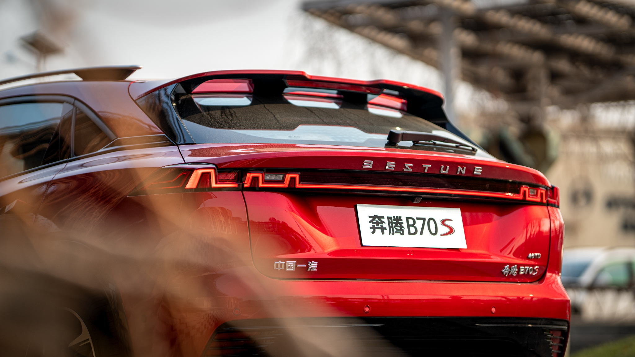 虽然奔腾B70S有着高颜值,但绝对不会以“颜值换空间”。车身尺寸上,奔腾B70S的长宽高分别为4555mm/1850mm/1515mm,轴距为2750mm,同级领先的车身尺寸让其横向和纵向空间都非常宽裕。修长的车身、大溜背设计加上低趴的姿态使得奔腾B70S极具轿跑范儿,下方五幅式轮圈造型十分吸睛,如同将五把锋利的刀刃拼接在一起,为奔腾B70S的颜值润色不少,内部红色刹车卡钳则从细节上提升它的运动气质。