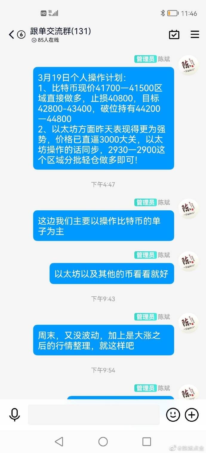 原标题:陈斌点金:3.20比特币多头一路进军42600成多空博弈关键点,操作上做多为主!