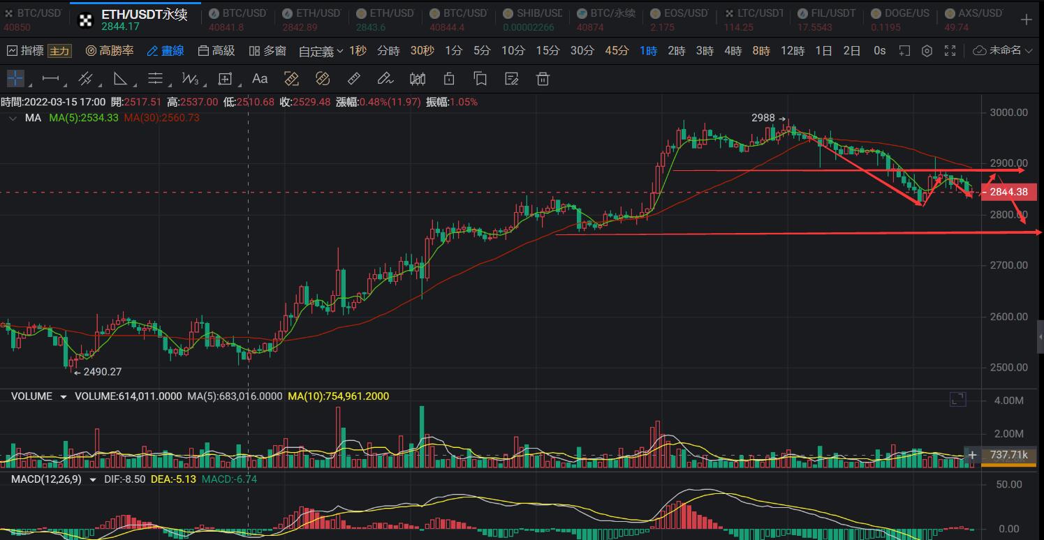 以太坊也是同样的思路,就日线上面来看黄昏星形态已成型,短期内行情运行多头已经失利,短期内下跌的可能性较大,可视为此次小幅上涨已经到头了,接下来有可能转为空头运行。临近压力位的滞涨本身就是一个不友好信号,所以昨日市场一片看多的呼声当中,我们为什么会有高位尝试做空的策略,就是因为以太的表现和K线走势让我做出这样的判断。实际上周六的走势已经构成了初步的反转信号,大阳线后面收高位十字星,又是压力位附近,这就是市场既然已经出现这样的苗头,那么我们就该考虑到变盘的风险,所以策略也会做出适当的调整,来更加迎合市场的走势,而不出意外的情况下,市场走出预期内的下跌,我们就得到了一个非常完美的高位进场的机会。今天同样的思路,利用行情向上测试2890一线压力的机会开始布局空单,止损放40个点空间,目标则可以先看前期下跌的低点2820一线,快速破位的话则看2770一线支撑的有效性。
