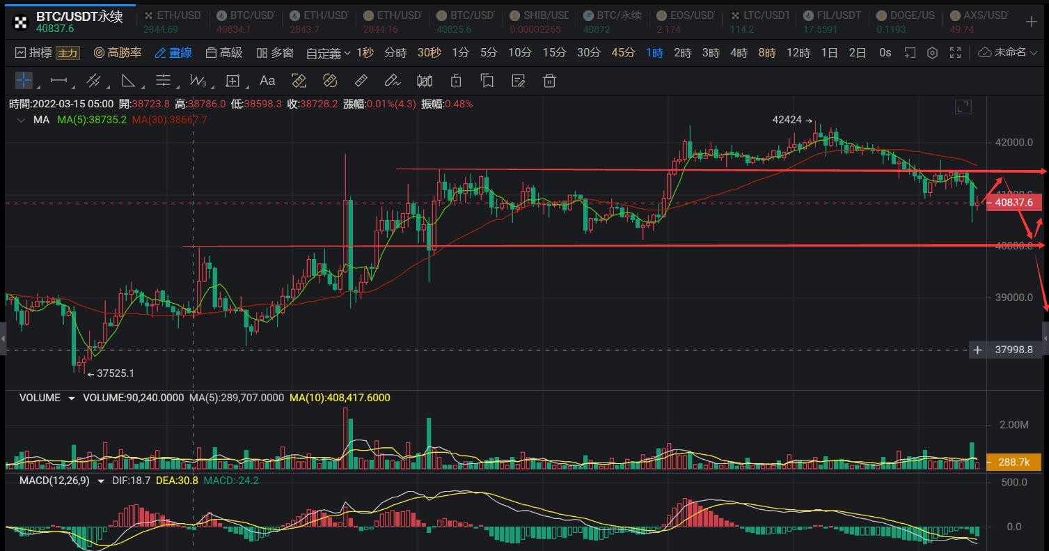 果然高位临近压力位滞涨都不是好事,市场昨日的走势也再次验证了这个理论,盘中比特币大饼双双下挫一路走低,不但跌破前期日内震荡的低点,也同步下跌破位了前期日内上涨的次高点支撑,之后凌晨尾盘虽然多头力量有小幅反扑尝试拉高,但是最终失利,行情短暂的刺破上方压力位之后没能守住战果,快速回撤下来,也就是大饼止步于41500下方,以太止步于2890一线,日线最终收大阴线让市场阴影笼罩。其实这才是行情的正常走势,没有一成不变的上涨,也没有长期单边的下跌,过程当中多空轮转运行才是市场的本质,灵活应对市场方向的转变也是我们交易的理念。上涨行情有做多赚钱的存在,但过程当中同样的也不乏做空套利的高手,重点是如何把控进出场点位是关键,多空是一方面,点位和时机也是重要的一环。