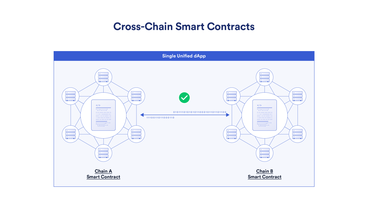 安全的跨链通信(即:在各个链上环境之间传输任意数据、通证和指令)是实现跨链智能合约的关键要素。跨链智能合约是去中心化的应用,由多个部署在不同区块链网络的智能合约组成。这些智能合约之间可以互相通信,并共同构成一个完整的应用。