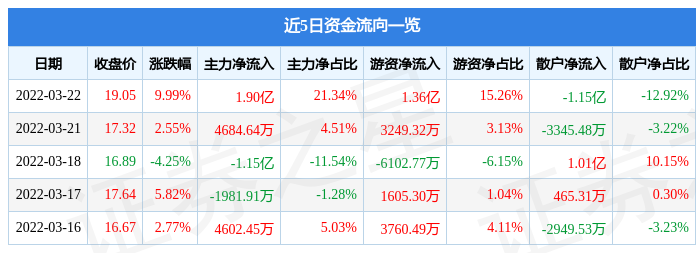 资金流向数据方面,当日主力资金净流入1.9亿元,游资资金净流入1.36亿元,散户资金净流出1.15亿元。近5日资金流向一览见下表: