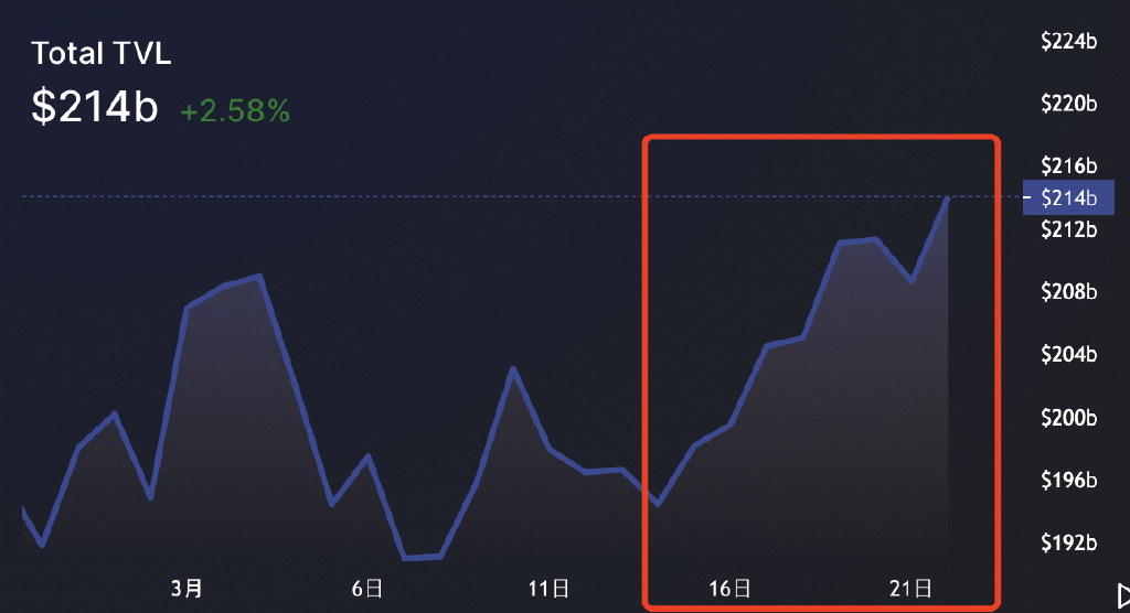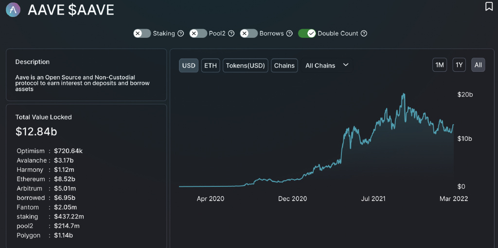 最后,不容忽视的是,Aave V3似乎带动了DeFi领域内的活力,Defi Llama数据显示,自3月16日Aave宣布升级之后,DeFi的总锁仓量的数据呈现出上升趋势,Aave的锁仓量更是在七日之内上升了13.93%。虽然这与大盘市场也有一定的关系,但是不容置疑的是Aave V3的强势出击为DeFi注入了一定的活力。