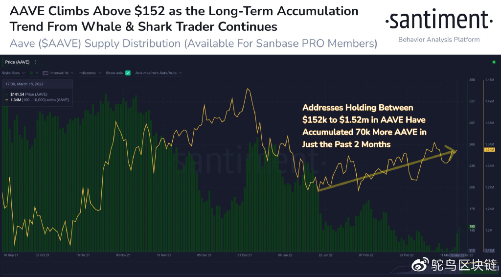 Aave作为“DeFi Summer”时期的明星项目,曾经的风头甚至屡次盖过借贷龙头Compound,如今作为DeFi老牌长青项目推出新品,DeFi卷土重来似乎指日可待。值得一提的是,消息公布两天后,在Santiment的数据统计中,就已经显示出了可喜的趋势,数据表明,大型鲸鱼在过去2个月总共积累了7万AAVE,价值1070万美元。