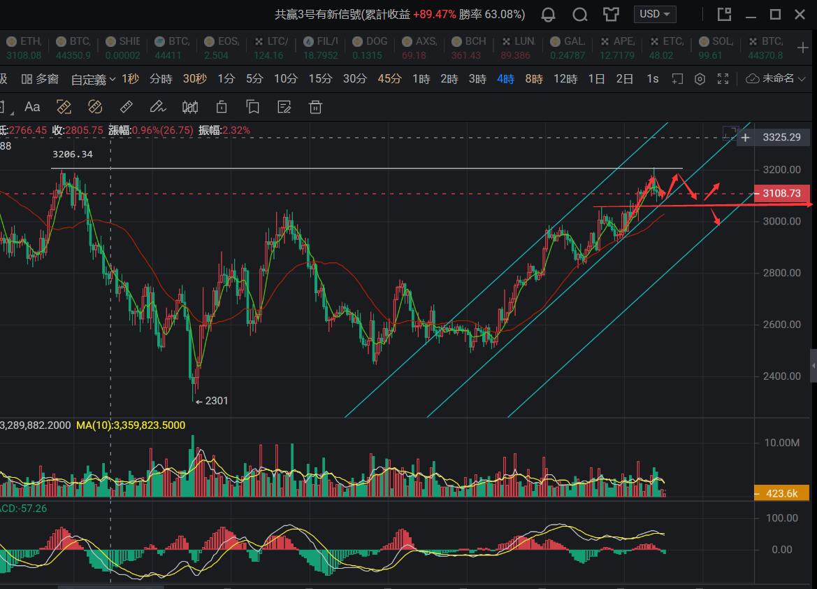 以太坊也是同样的思路,短期内关注3050-3250区间内高低点的有效性,压力位不破做空,支撑不破做多,若是行情跌破支撑或是上破压力位的话,那就是行情进一步走出方向,再顺势而为。整体来看,以太坊的走势要弱势一些,昨天日线上面以太最终收了接近十字星的个高位小阴线,构成了初步反转信号,短期内向下的概率要明显一些,同样的也是近期持续上涨的走势较强,不排除今天继续上探测试高点压力的可能,但是破位的几率不是很大。其实以太大饼老刘我个人都是比较倾向于高位到顶了,阶段性涨势结束,只是说一个小级别的反转走出不能确定就一定不会再次破位,所以日内做个高位保护性的策略,以防意外,做交易嘛,随时都充满了不确定性,也就是面对不同的情况也要做到有不同的策略,尽量是做到尽善尽美,已看好的方向做主要思路,面对任何情况不至于手足无措。以太思路,反弹3210-3250一线不破开始做空,止损带40点,目标看3050,3050不破做多,止损40个点,目标看3200一线。