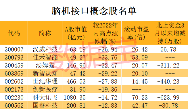 证券时报·数据宝统计,目前有布局脑机接口的上市公司较少,概念股仅8只。截至3月25日,这些概念股3月以来平均下跌6.67%,跑输同期上证指数,仅创新医疗逆市上涨,期间涨幅2.62%。与年内高点相比,汉威科技、佳禾智能、汤姆猫等3股回撤幅度均超30%。