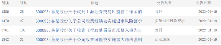 4月19日晚,*ST易见一口气连发四条重大公告,令5.05万股东一夜难眠。