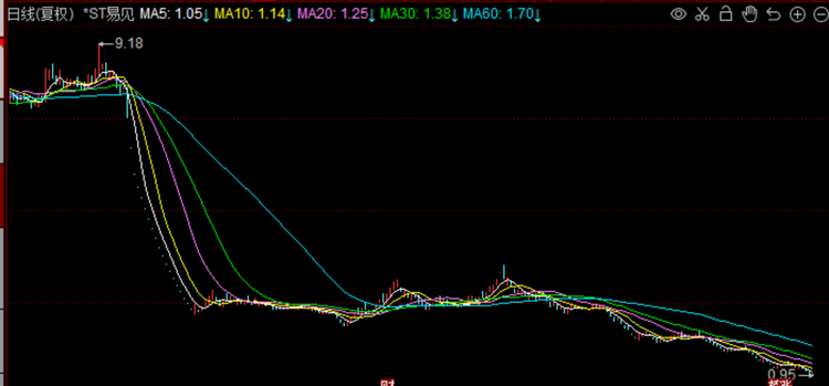 4月20日,曾被投资者追捧的区块链牛股*ST易见开盘跌停,盘中一度急拉,但最终于事无补,股价报收0.95元/股,正式跌破1元面值。如果公司股票连续 20 个交易日收盘价均低于 1 元,公司股票将被终止上市。