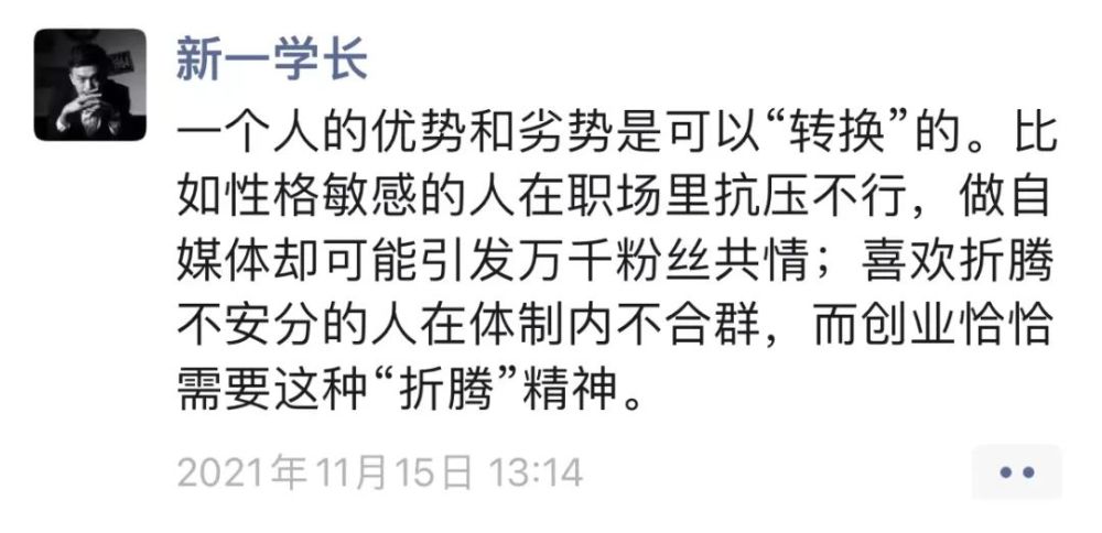 上面分享的几条,都是新一学长给我的建议中惊艳到我的几句话。
