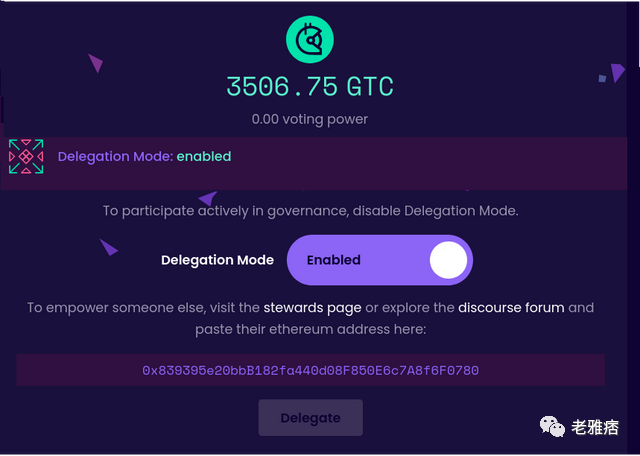 Gitcoin DAO 中的投票委托页面