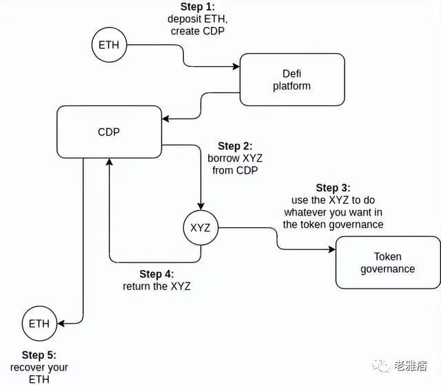 最简单的例子是从 defi 借贷平台(例如Compound)借款。已经持有 ETH 的人可以将他们的 ETH 锁定在其中一个平台的 CDP(“抵押债务头寸”)中,一旦他们这样做,CDP 合约就允许他们借入 XYZ,例如。他们投入 ETH 价值的一半。然后他们可以用这个 XYZ 做任何他们想做的事情。为了收回他们的 ETH,他们最终需要偿还他们借来的 XYZ 以及利息。