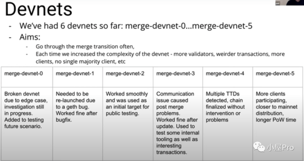 如上图所示,到目前为止,已经有六个合并开发网,每个都产生了不同的结果。前几个开发网有严重的错误。但最近的那些验证了更复杂的情况,并且基本上按预期工作。对于即将到来的主网合并来说,这是一个好兆头。