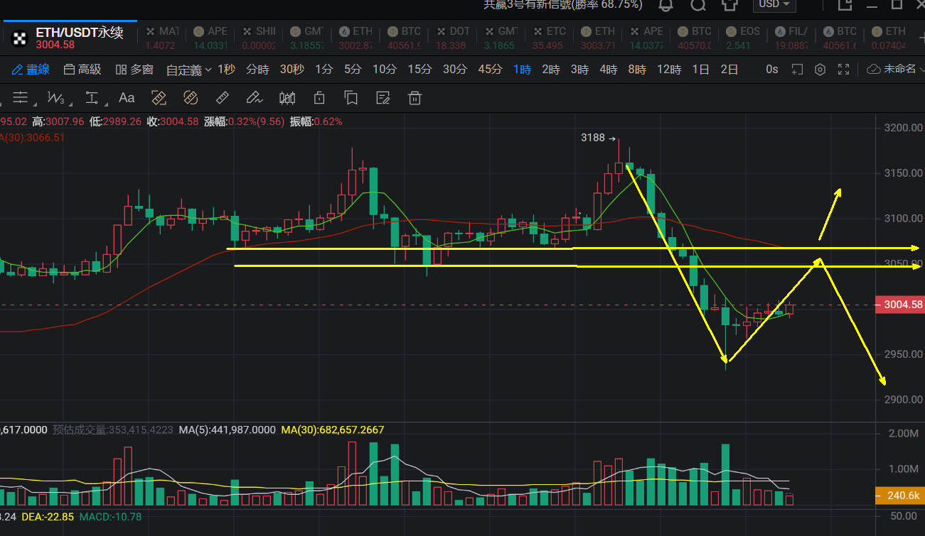 熟悉的行情走两遍,意外随之而来,所以说行情不是一成不变的,需要去灵活应对,昨天大饼以太纷纷冲破高点之后迎来了大幅回落,又一个刺破压力反走空的经典走势,短期内大饼以太再次下跌去往下方低点支撑位置的可能性就比较大了,不管是日线还是小级别来看,趋势都有转向的迹象,所以今天关注的可能得慎重对待看行情是否还能进一步下挫了。