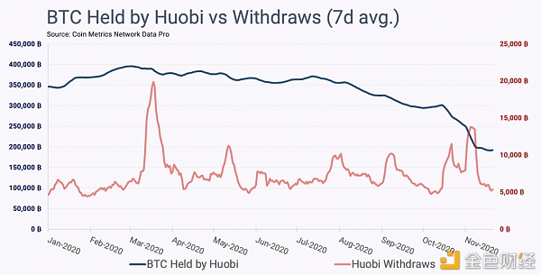 尽管中国对比特币业务的打击无疑影响了Huobi,但可能还有其他因素减少了西方的交易所托管的资产。