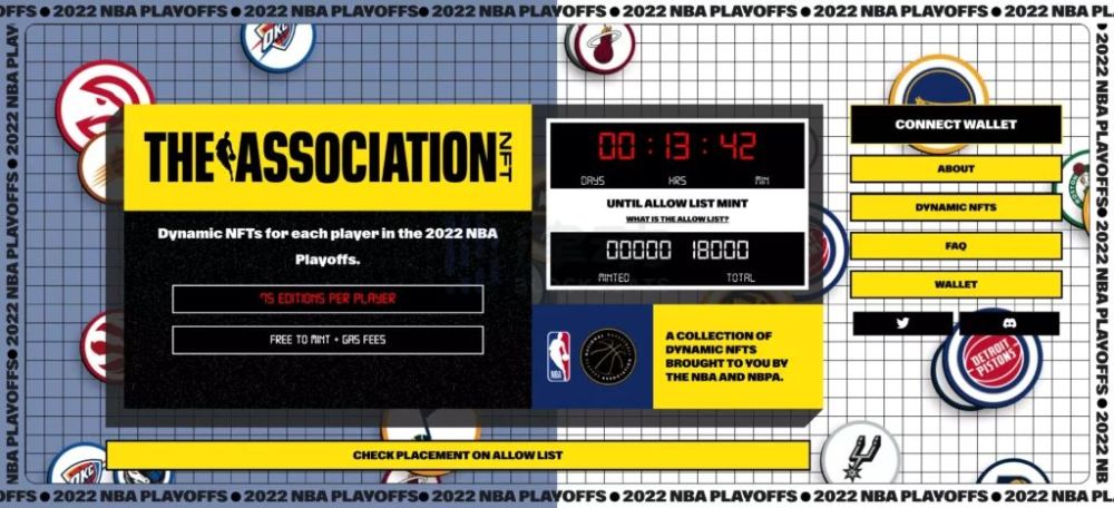 而在今天4月20日美国职业篮球联盟(NBA)正式宣布将于4月21日在以太坊上推出The Association系列NFT ,靠白名单免费铸造,总量为18000 枚。
