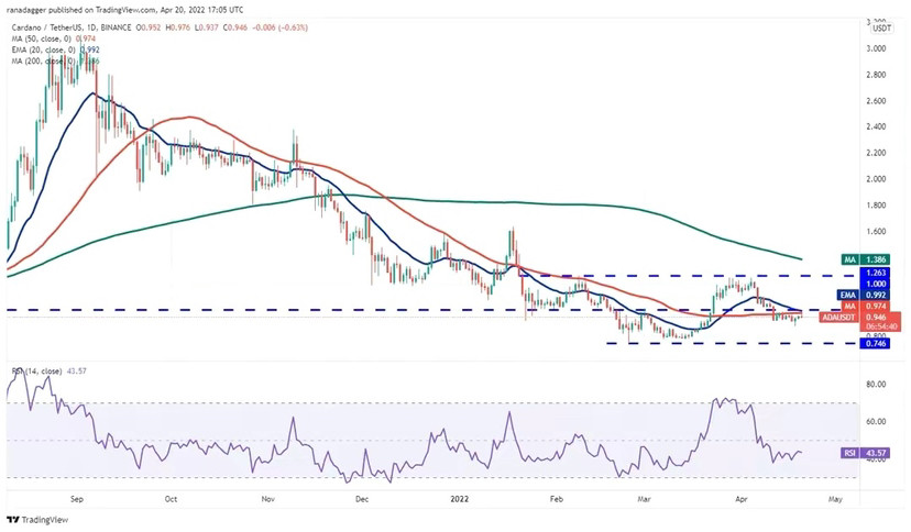 卡尔达诺 ( ADA ) 在 4 月 18 日跌破直接支撑位 0.91 美元,但空头无法压低价格。这表明多头正试图形成更高的低点。