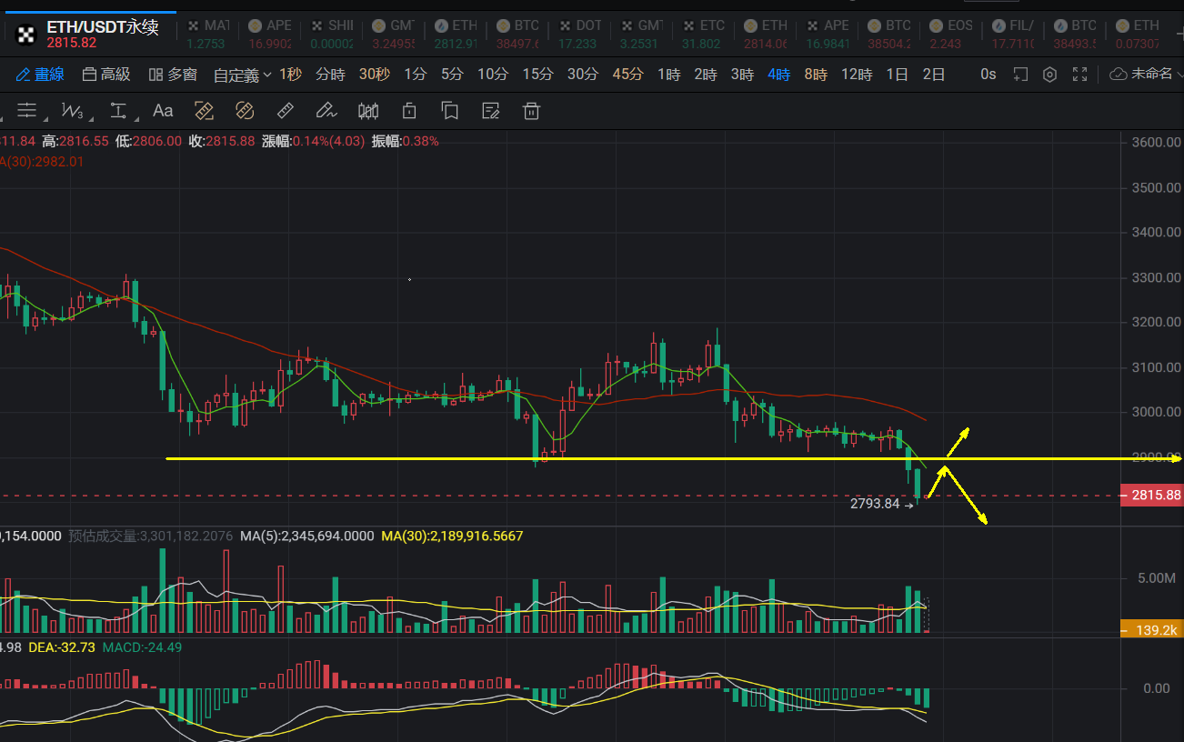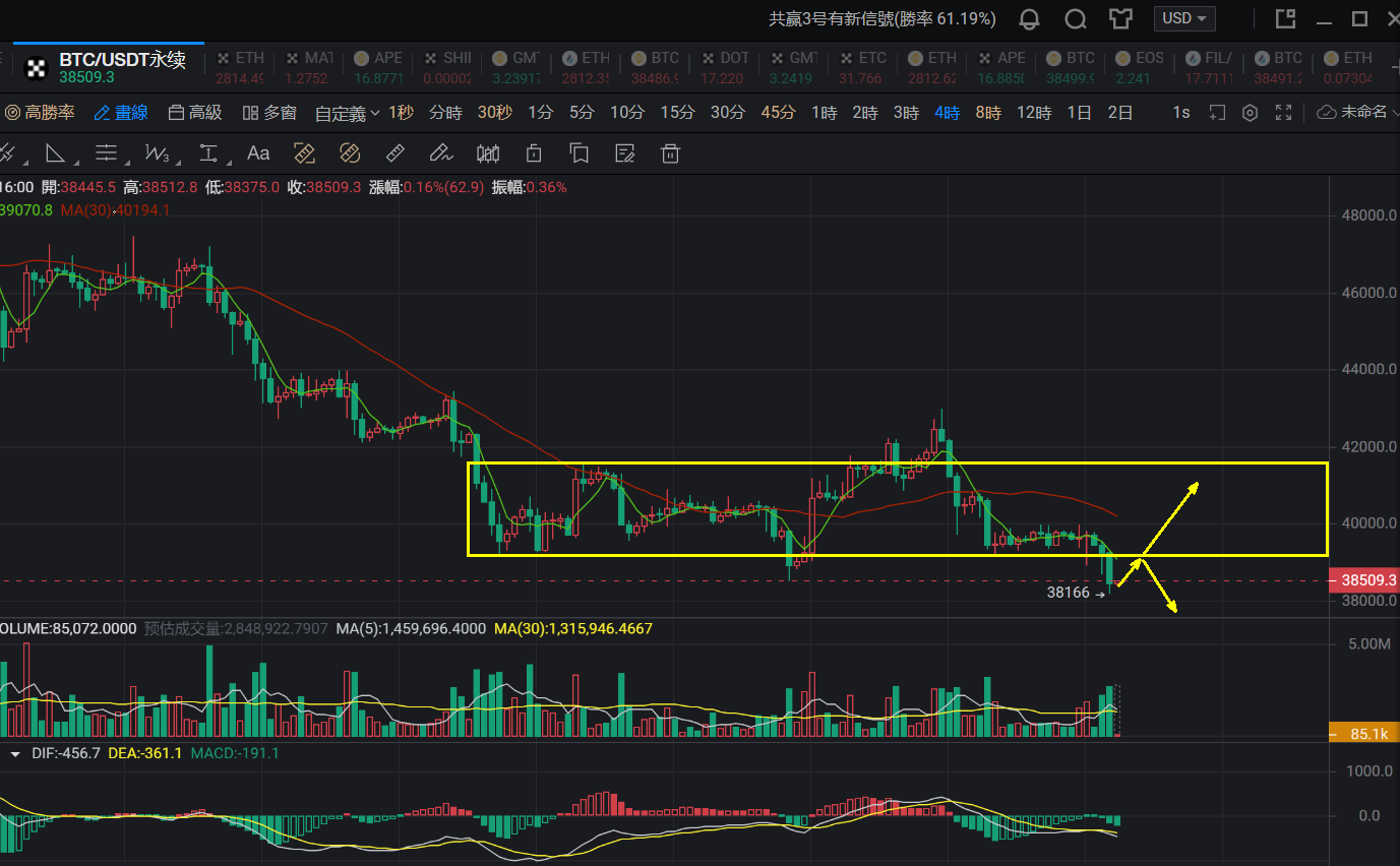 周一开盘就放大招,比特币以太坊持续下跌并且都已经跌破前期的重要支撑位置,短期内似乎空单趋势已经成型了,小级别下跌破位之后关注的可能就是行情会不会走进一步的延续。行情就是这样,走一步看一步去做大概率,既然已经破位那么反弹的力度和小时线的信号就是我们关注的重点,大饼先看前期的39100一线压力位的有效性,以太则是2900关口。