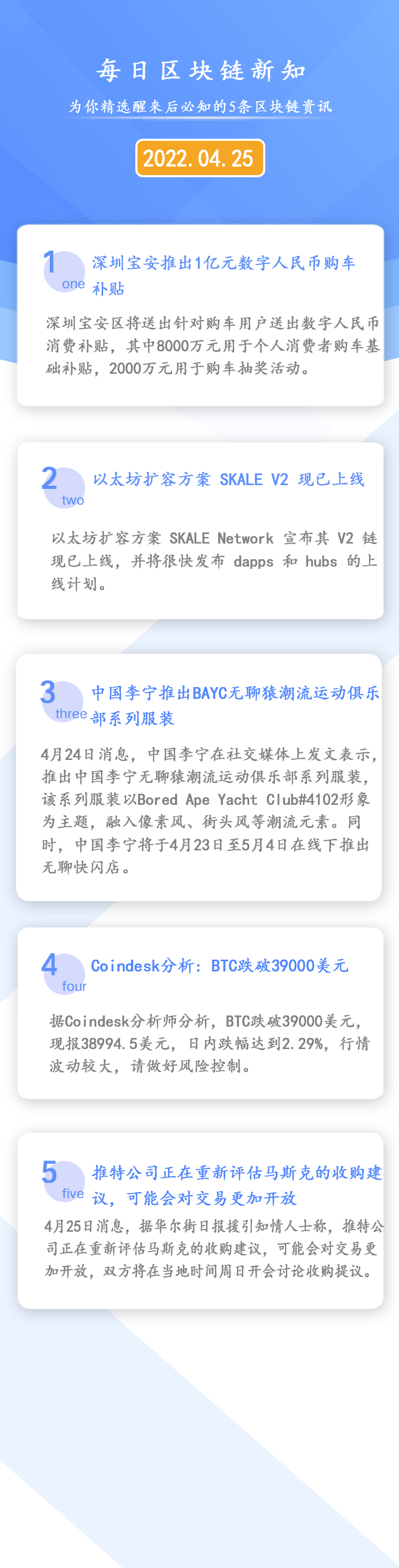 2022年04月25日《区块链每日必知》以太坊扩容方案SKALEV2现已上线
