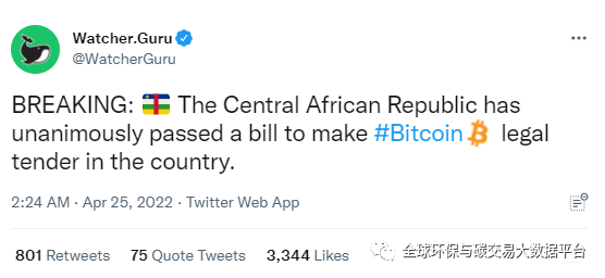 这也是迄今为止全球第二个国家(第一个是萨尔瓦多在21.9.7日)将比特币列入法定货币。