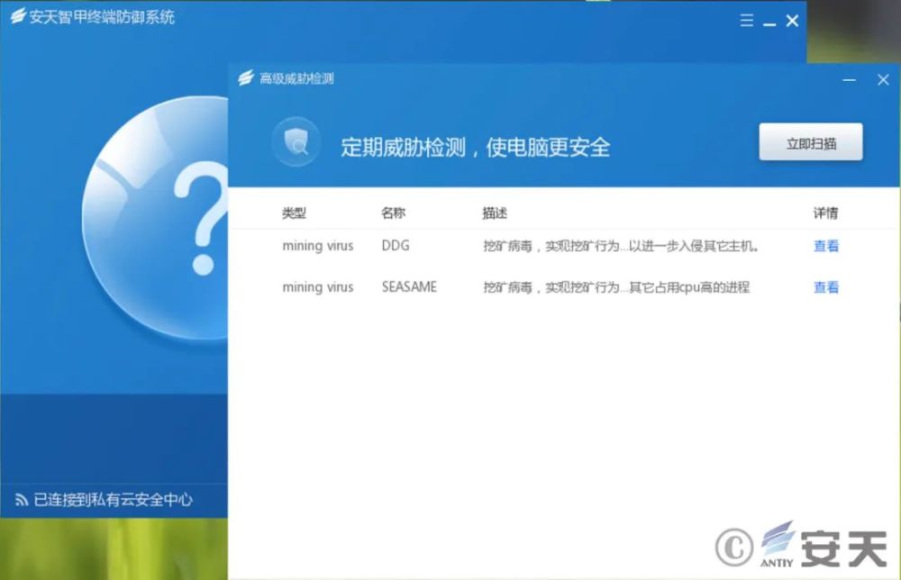 “智甲终端防御系统”是业内率先采用“云查杀+黑白双控模式”进行有效防御的终端安全防护产品,结合本地的深度检测和云端服务的强大计算能力,有效保障“挖矿木马”快速精准的识别,同时大幅减少终端资源占用;智甲能主动对进入系统的文件进行监控,自动感知并扫描文件安全性;自动扫描监控进程源文件以及调用文件的安全性;监控网络的端口和流量,实现对“挖矿行为”的实时监测告警。