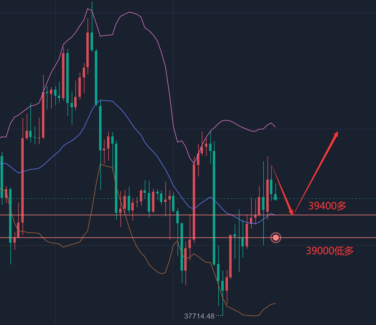 比特币操作建议:回踩39400-39000附近进场多,目标40000-40500,防守38700。