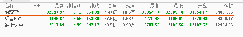 美股三大指数大幅收跌,纳指跌4.99%,标普500指数跌3.56%,道指跌3.12%。互联网零售概念股、大型科技股、热门中概股集体重挫。苹果收跌5.57%,总市值较前日蒸发超1600亿美元。