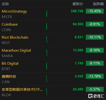 美股异动|区块链概念股暴跌比特币价格刷新2021年7月以来新低