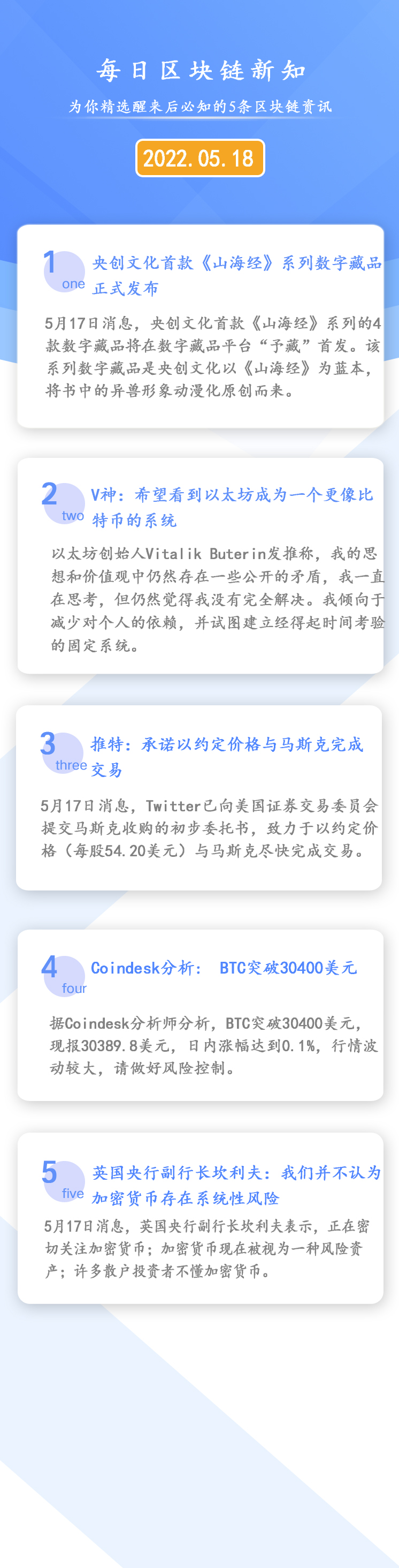 2022年05月18日《区块链每日必知》V神:希望看到以太坊成为一个更像比特币的系统