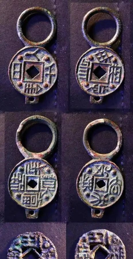 而且这种特殊性质的符合半两,目前发现的不同铭文有十多种,有的可以两两解读,比如长勿相忘,日入千金,辟兵宜子,思君如言,乐是千金等等,此外还有一些如三子,相思,上问,太常,同时宋老师提到有一个非常有趣的现象,在战汉时期的印章,带钩中有一种带有榫卯结构,在接触面还铸有阴阳文字,比如长寿,千金,长相思,勿相忘等等铭文,与那些四铢半两的时代很接近,这个真的是非常有趣的,欢迎大家在评论区留言分享。