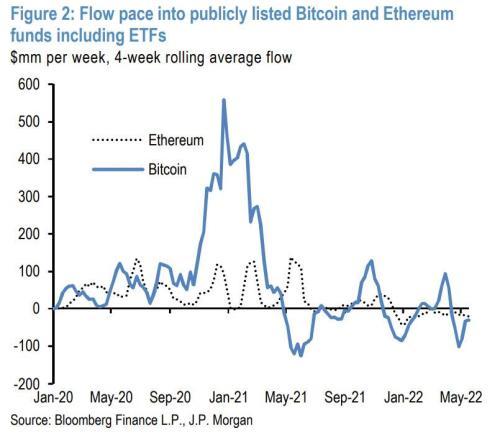 自2021年5月和2021年6月科技股下滑以来,持有比特币期货的ETF也出现了最大的资金外流。目前,加密货币的总市值为1.3万亿美元,较11月的3万亿美元大幅下降。