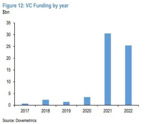 “到目前为止,几乎没有证据表明对加密资产的风险投资资金在Terra崩盘后枯竭。今年迄今为止的250亿美元的风投资金中,近40亿美元流向了Terra。我们最乐观的猜测是,对加密资产的风险投资将继续,类似于2018/2019年那样的漫长冬季将得以避免。”