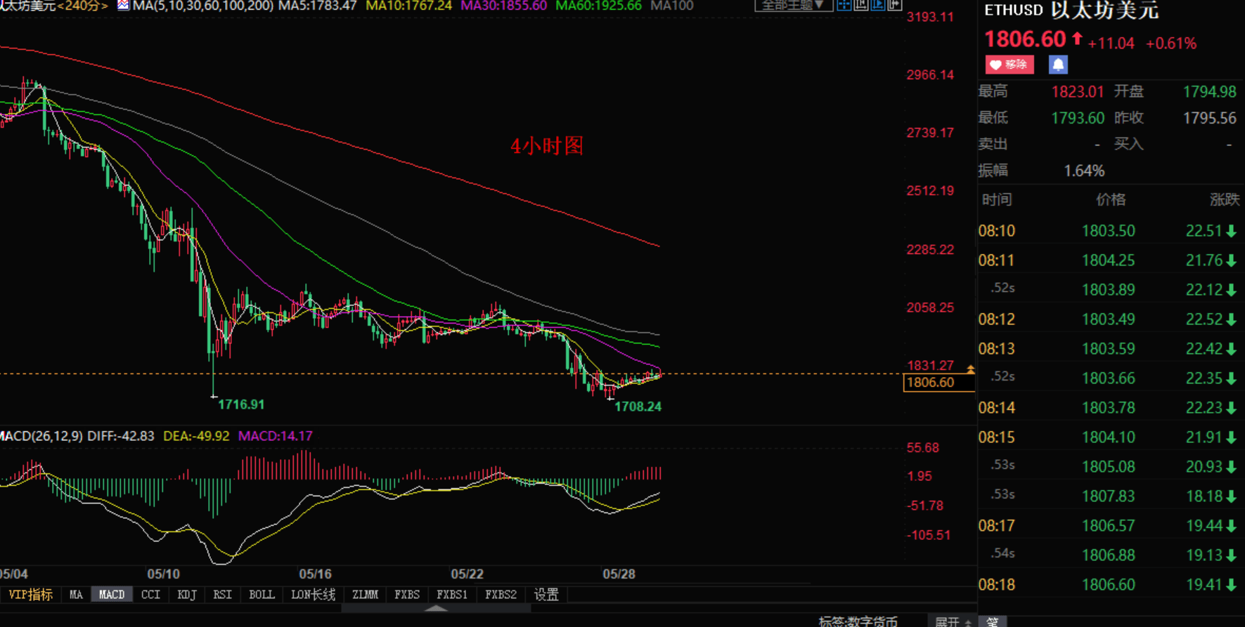 小张解盘:5.30周一大饼(BTC)以太坊日内行情分析如下