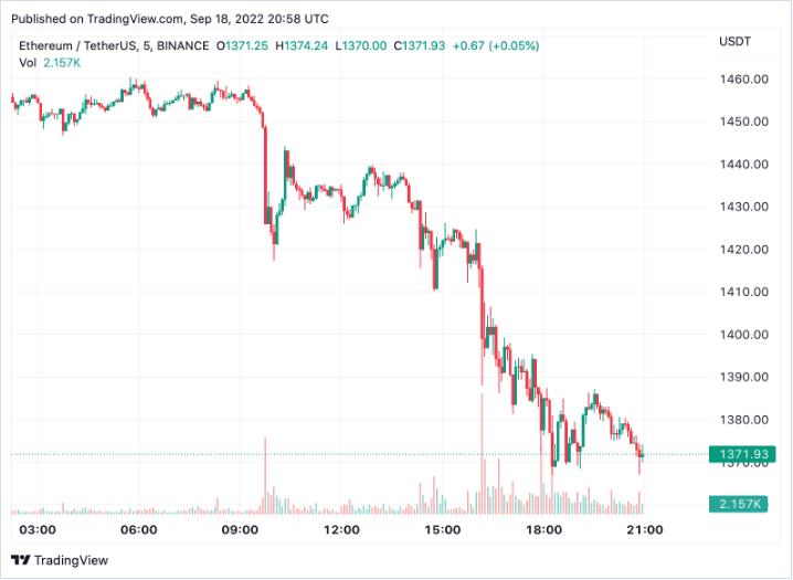 ETH /USD 于 2022 年 9 月 18 日。统计数据记录于 20:58 pm (UTC)。