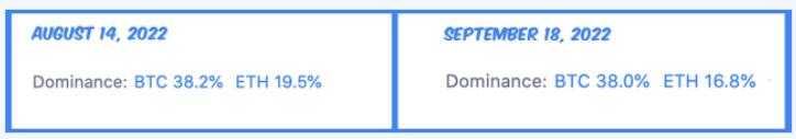 世链投研| 由于以太坊的市场主导地位在 30 天内下降 13%,合并翻转预测失败