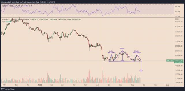 由于美联储的鹰派立场以及试图将通胀率从目前的 8.3% 水平降低,比特币价格可能会继续受到影响。在央行更新后,许多分析师指出,鉴于美联储可能在年底前再加息 75 个基点,BTC 的价格可能会跌破目前 18,000 美元至 20,000 美元的技术支撑区间。