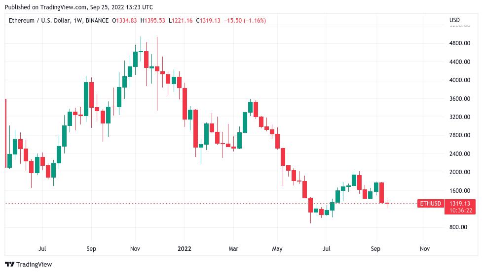 ETH/USD 1 周蜡烛图(币安)。资料来源:TradingView