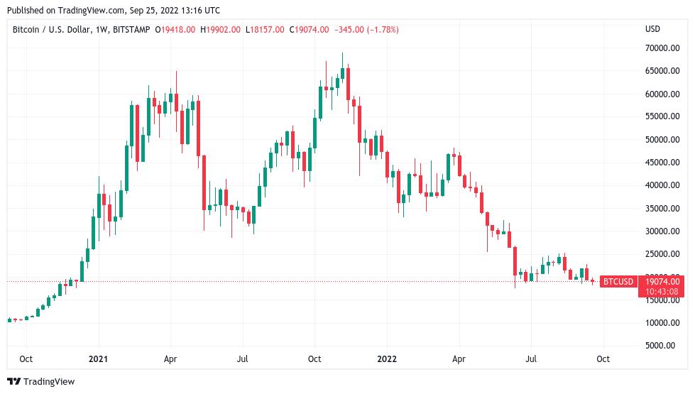 由于一周的宏观动荡造成了损失,比特币 ( BTC ) 于 9 月 25 日创下 2020 年以来的最低周收盘价。