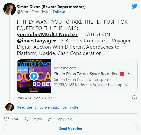 根据前投资银行家和天使投资人西蒙·迪克森公布的细节,这三个交易所正在竞标收购 Voyager Digital,并各自提出了各自的收购条款和条件。详细信息也发布在 Reddit 上,表明 FTX 和 Binance 各自提议为 Voyager 的资产提供大约 5000 万美元的现金,尽管 Binance 的美元金额更高。消息人士称,现金金额将用于“缺陷和其他索赔”。
