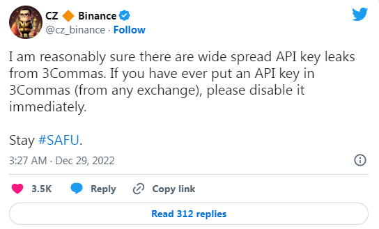 3Commas CEO 在 CZ 发出警告后确认 API 密钥泄漏