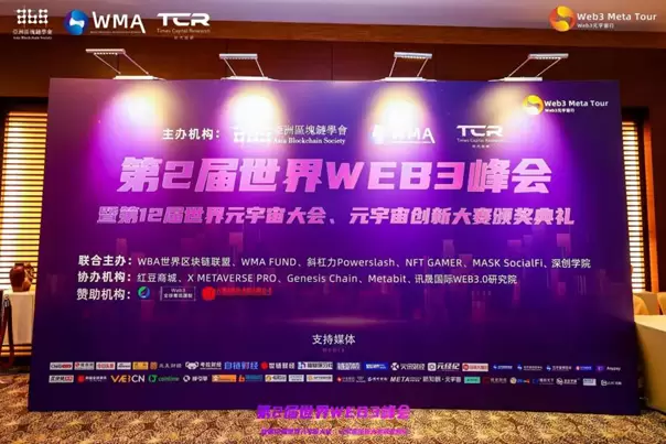 为进一步推动Web3行业发展,助力香港乃至湾区数字经济高质量发展以及数字世界相关产业落地,增强产业发展信心,3月26日,由亚洲区块链学会、WMA世界元宇宙发展联盟、TCR时代投研主办,WBA世界区块链联盟、WMA FUND、斜杠力Powerslash、NFT GAMER MASK、深创学院联合主办,红豆商城 、X METAVERSE PRO、Genesis Chain、Metabit、讯晟国际WEB3.0研究院协办的“第2届世界WEB3峰会”暨“第12届世界元宇宙大会暨元宇宙创新大赛颁奖典礼”在香港会展中心圆满落幕。