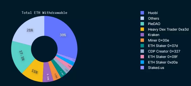 根据区块链分析公司 Nansen 的数据,在可提取的以太币总量中,加密货币交易所火币持有最大份额,为 30%,其次是去中心化自治组织 PieDAO,为 17.7% 。