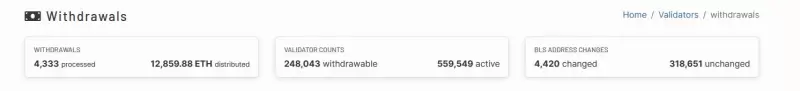 目前,大约 44% 的验证者,即 559,549 名活跃验证者中的 248,043 名,可以请求部分或全部撤回。