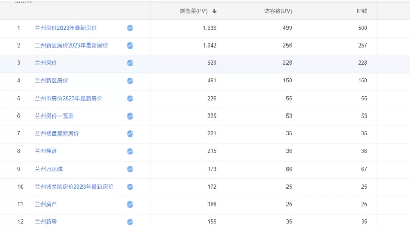 最惊喜的是网站的自然流量,俞总团队把兰州全市的楼盘与竞品平台进行对比分析,在一周内完成了楼盘的新建与信息丰富。然后对城市的主打的核心项目、竞品项目及热门项目还从动态、问答、点评等进行了楼盘精编,还有就是通过抓捕当地热点房产信息,以及导购文章的输出,这些工作为后续流量增长和精准获客打下了坚实的基础。运营数据的丰收给了俞总团队最好的回报: