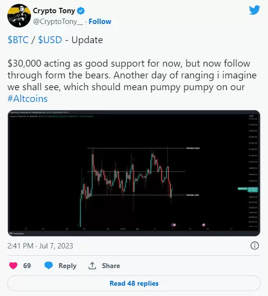 比特币随着交易员从一天的波动中恢复过来,7 月 7 日将出现更多区间波动。