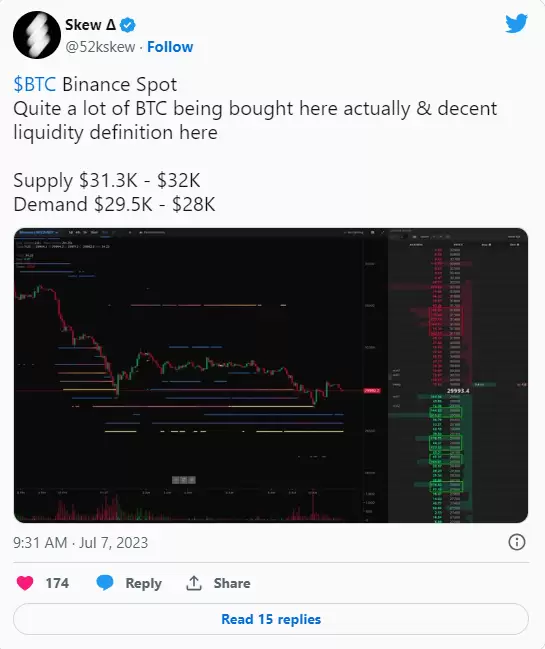 尽管如此,交易员同行 Skew 指出,在隔夜低点 29,700 美元附近,买家似乎表现出了浓厚的兴趣。