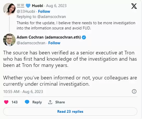 Cointelegraph 获悉,过去几周至少有一名 C 级高管离开火币网,不过尚不清楚此次离职是否与中国的调查有关。在社交媒体平台X(原Twitter)上,火币社交媒体负责人表示,谣言不实,该交易所“目前表现良好”。