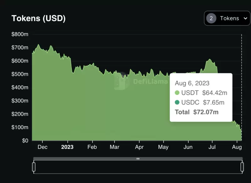 根据DefiLlama 8 月 6 日的数据,火币钱包总共仅持有 7200 万美元的 USDT 和 USDC。