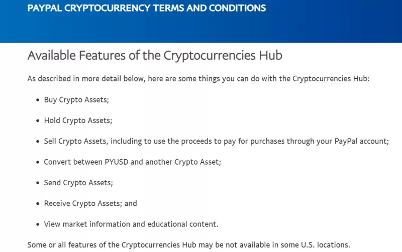 PayPal 加密货币中心如条款和条件中所述。资料来源:贝宝