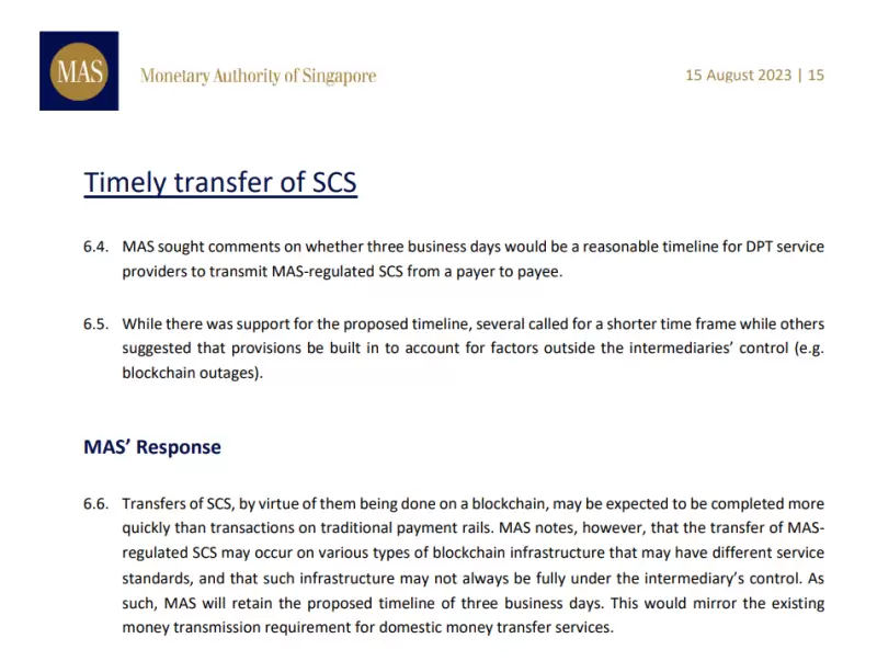 8 月 15 日,新加坡金融管理局(MAS)发布了该城邦稳定币的监管框架。在新发布的指导方针中,金融监管机构强调,尽管有一些反馈要求缩短时间范围,但仍将考虑将三个工作日作为 SCS 的及时转移。