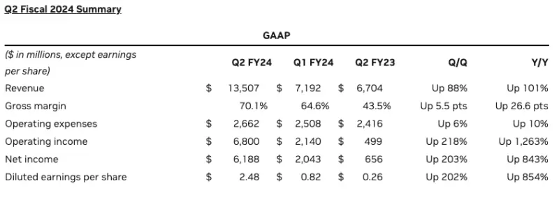 英伟达 (NVDA) 第二季度收益摘要。来源:英伟达
